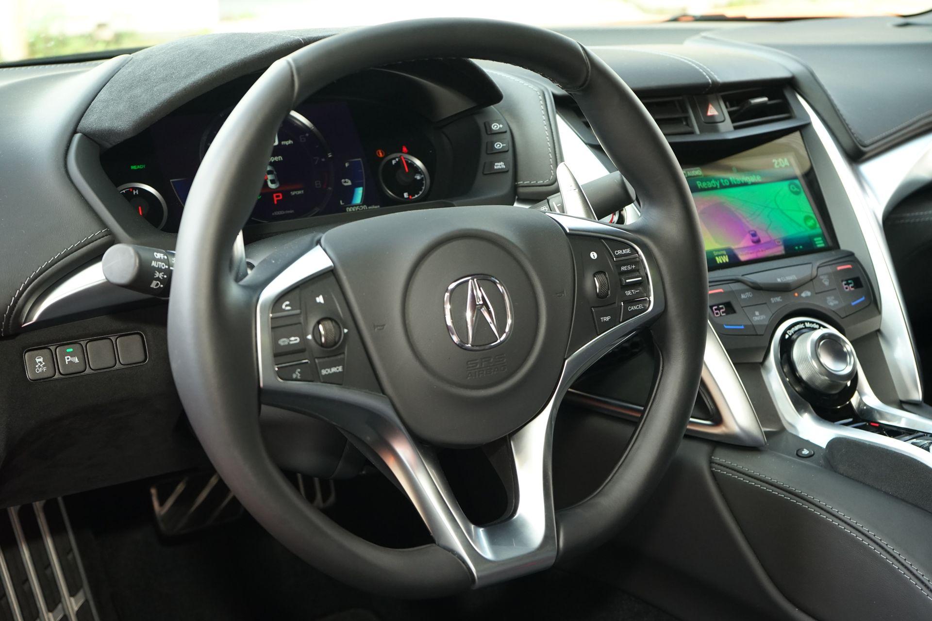 Black Leather 4-Way Power Adjustment 4-Wheel Disc Brakes 9 Speakers ABS brakes Adaptive suspension Air Conditioning Alloy wheels AM/FM radio Apple CarPlay/Android Auto Auto High-beam Headlights Auto-dimming Rear-View mirror Automatic temperature control Brake assist Bumpers: body-color Carbon Fiber Rear Decklid Spoiler Compass Delay-off headlights Dual front impact airbags Dual front side impact airbags Electronic Stability Control Emergency communication system: AcuraLink Exterior Parking Camera Rear Four wheel independent suspension Front anti-roll bar Front Bucket Seats Front dual zone A/C Front reading lights Garage door transmitter: HomeLink Heated door mirrors Heated front seats Heated Power Sport Seats Illuminated entry Knee airbag Low tire pressure warning Memory seat Navigation System Occupant sensing airbag Outside temperature display Overhead airbag Panic alarm Power door mirrors Power driver seat Power passenger seat Power steering Power windows Premium audio system: Acura/ELS Studio Radio data system Radio: ELS Studio Premium Audio System Rain sensing wipers Rear anti-roll bar Rear window defroster Remote keyless entry Security system Semi-Aniline Premium Leather Seat Trim Speed control Speed-sensing steering Speed-Sensitive Wipers Sport steering wheel Steering wheel mounted audio controls Tachometer Telescoping steering wheel Tilt steering wheel Traction control Trip computer Turn signal indicator mirrors Variably intermittent wipers and Wheels: 19" x 8.5" Fr/20" x 11" Rr Forged Aluminum.