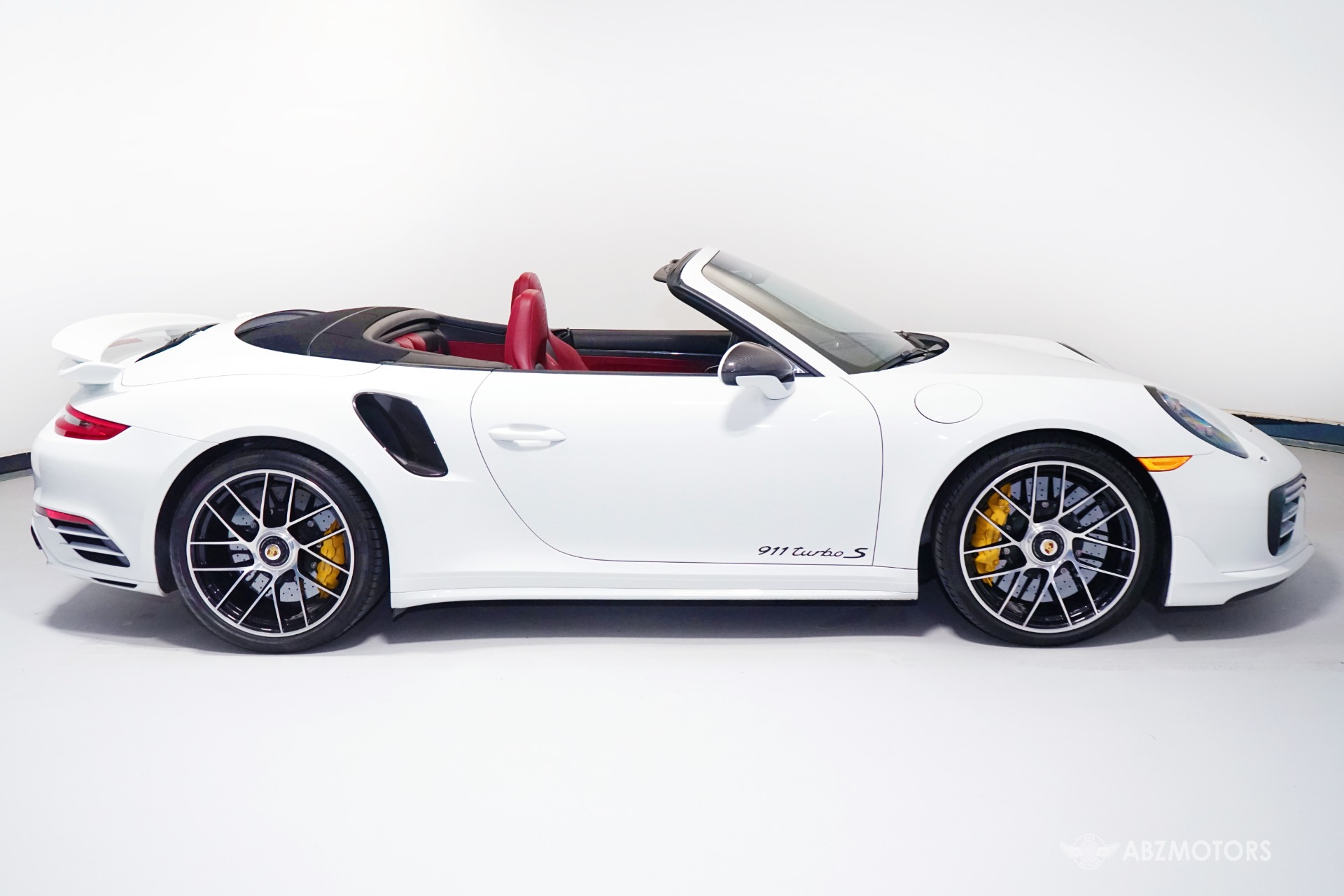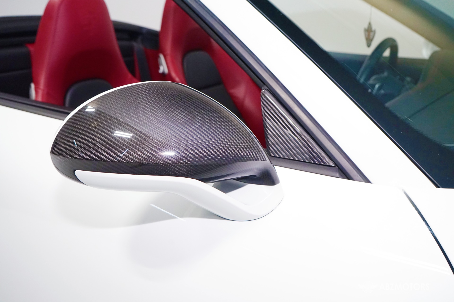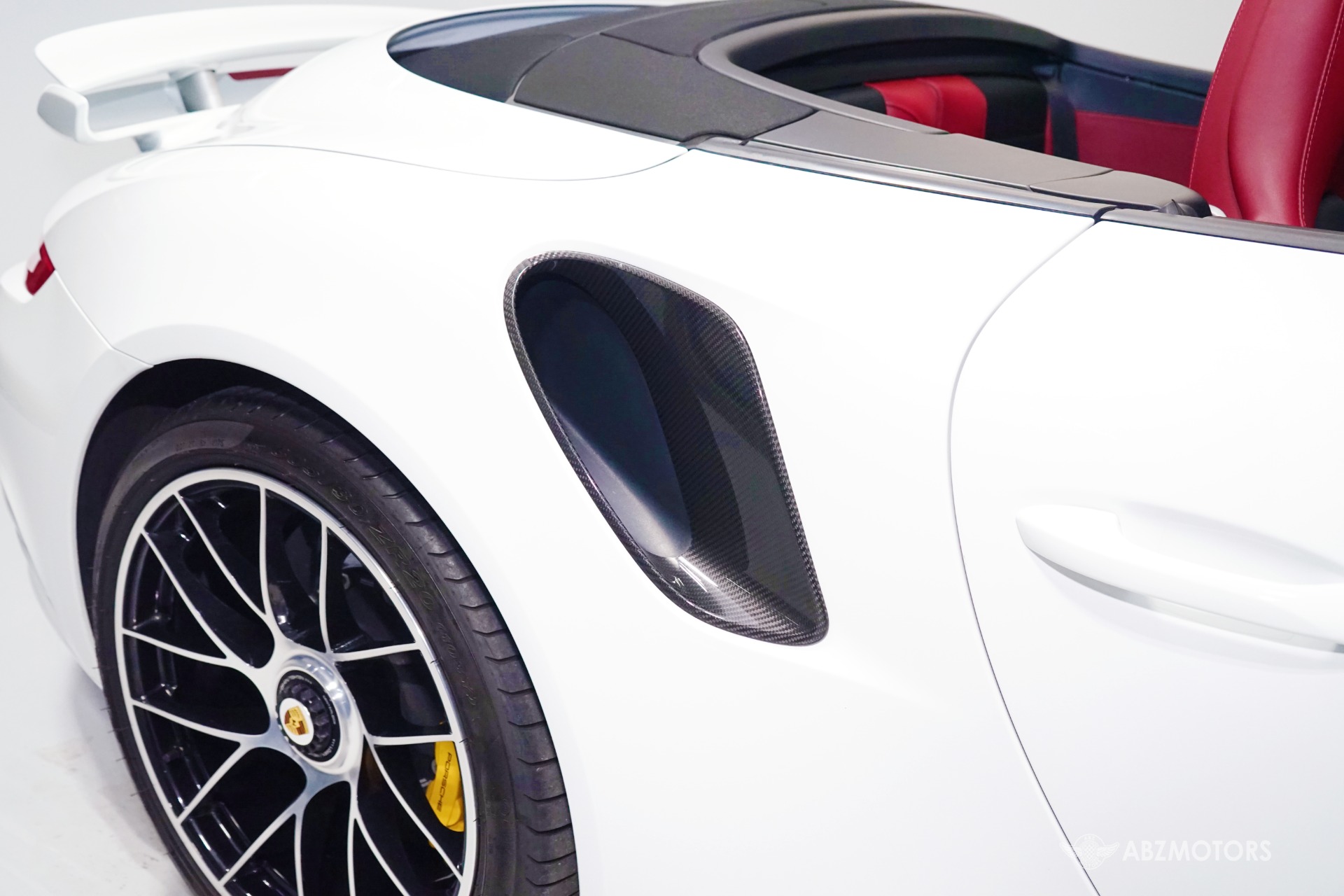 Equipped with the Aerokit Turbo and Exterior Carbon Package this example features enhanced aerodynamics along with carbon fiber window triangle trims and painted air intake/outlet slats adding a more aggressive visual profile.