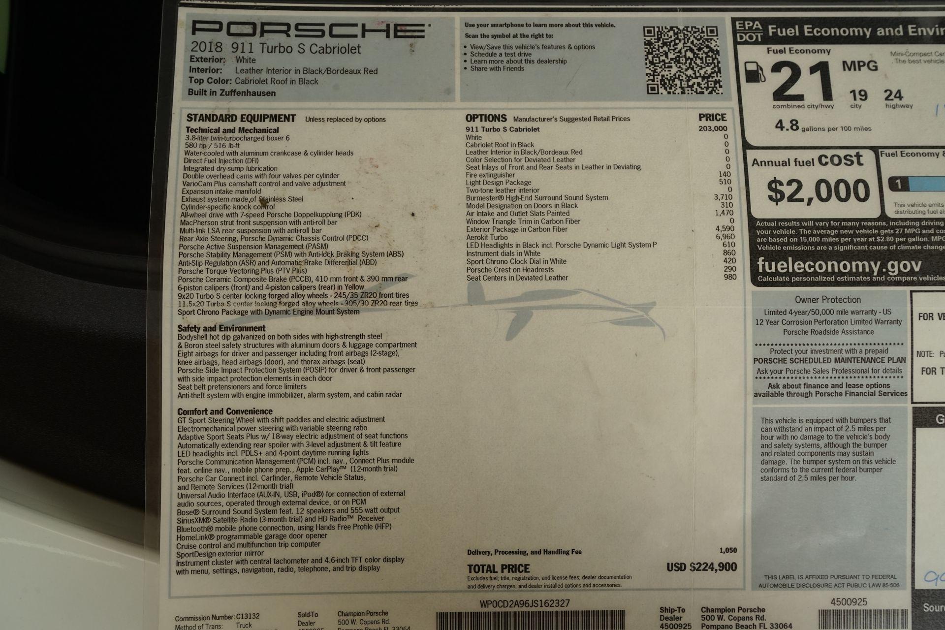 Highlights include: Burmester High-End Surround Sound System 18-Way Adaptive Sport Seats Plus Porsche Ceramic Composite Brakes (PCCB) adaptive suspension Apple CarPlay Porsche Communication Management (PCM) with navigation Front & Rear Parking Camera and Memory Package.
