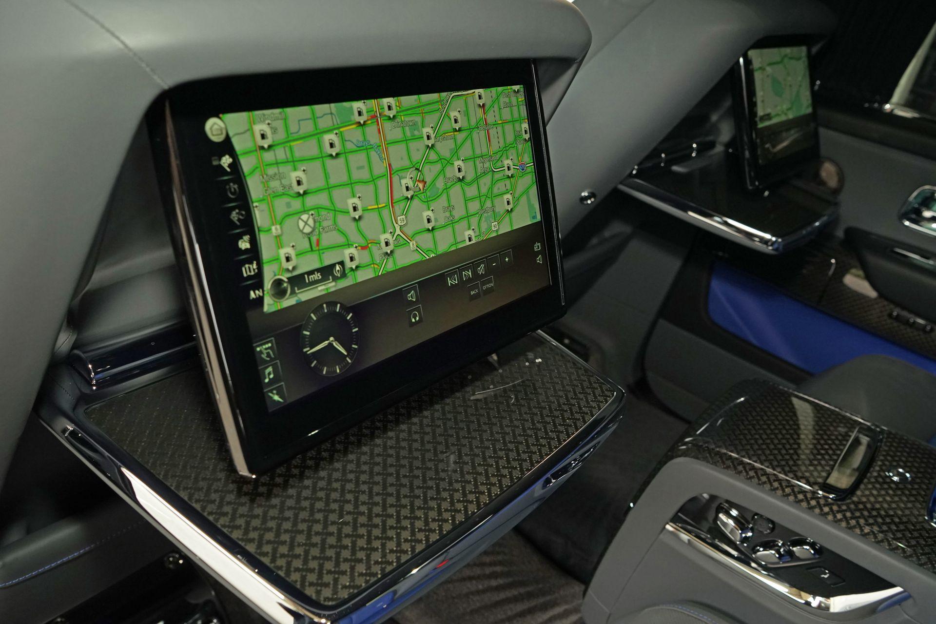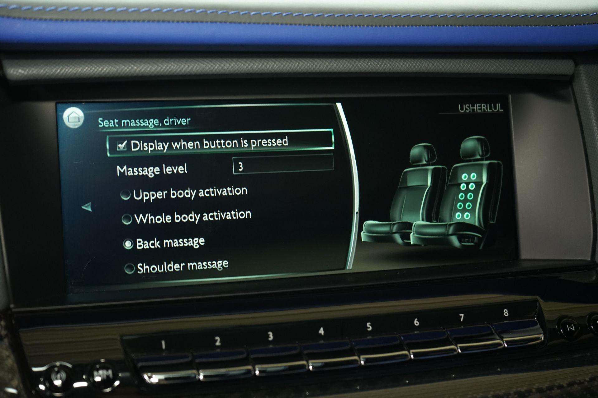 The interior is extensively customized through the Drivers Package featuring Commissioned Collection leather seating RR Monograms on all headrests contrast stitching extended leather headliner picnic tables and Spirit of Ecstasy embossing on the doors. Heated and ventilated front seats with massage heated rear seating and dual-zone climate control throughout ensure a first-class experience for every passenger.